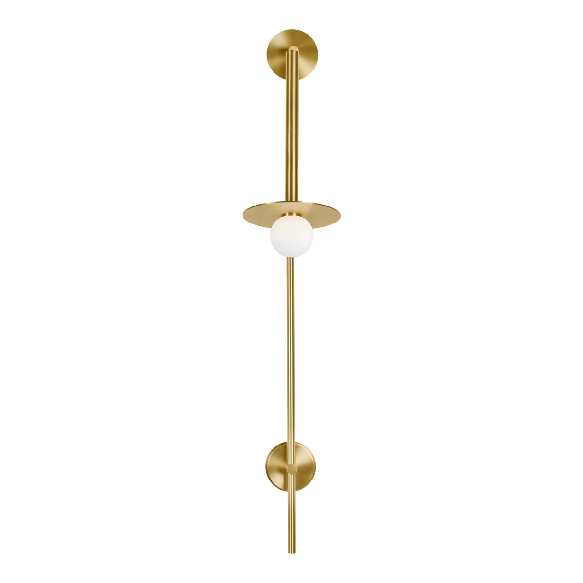 Nodes task, ceiling and wall lighting is minimal yet bold, highlighting Kelly's distinctive juxtaposition of mixed-materiality and curvilinear form. Light radiates from milk glass globes set against metal discs. All fixtures can be used or without the discs. The cast canopy is available in Burnished Brass or Midnight Black. Hanging fixtures within this family feature black fabric cords, while pivot sconces can be cord and plug or hard wire.