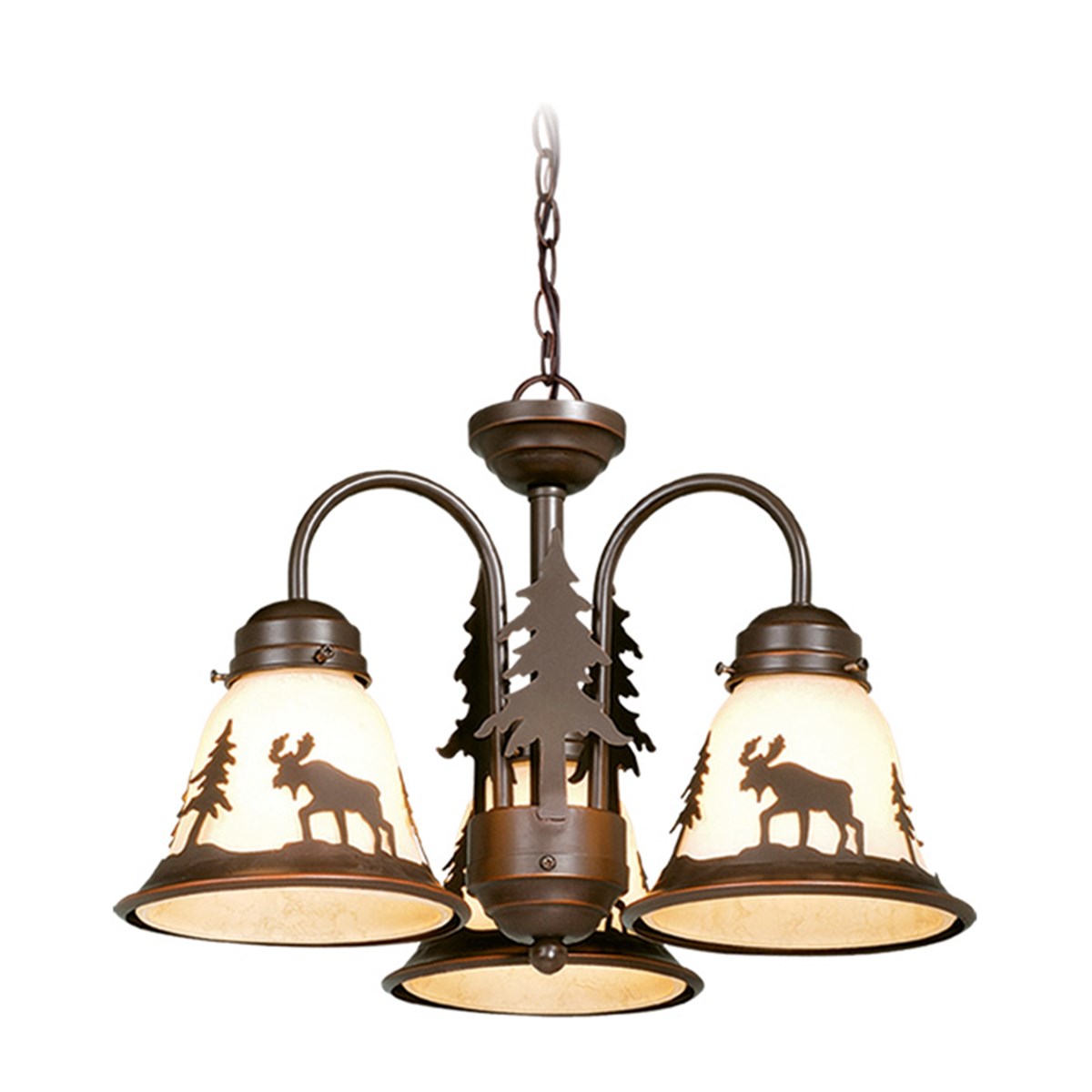 Yellowstone 3L Dual Mount Light Kit/Mini Chandelier Burnished Bronze with Amber Flake Glass
