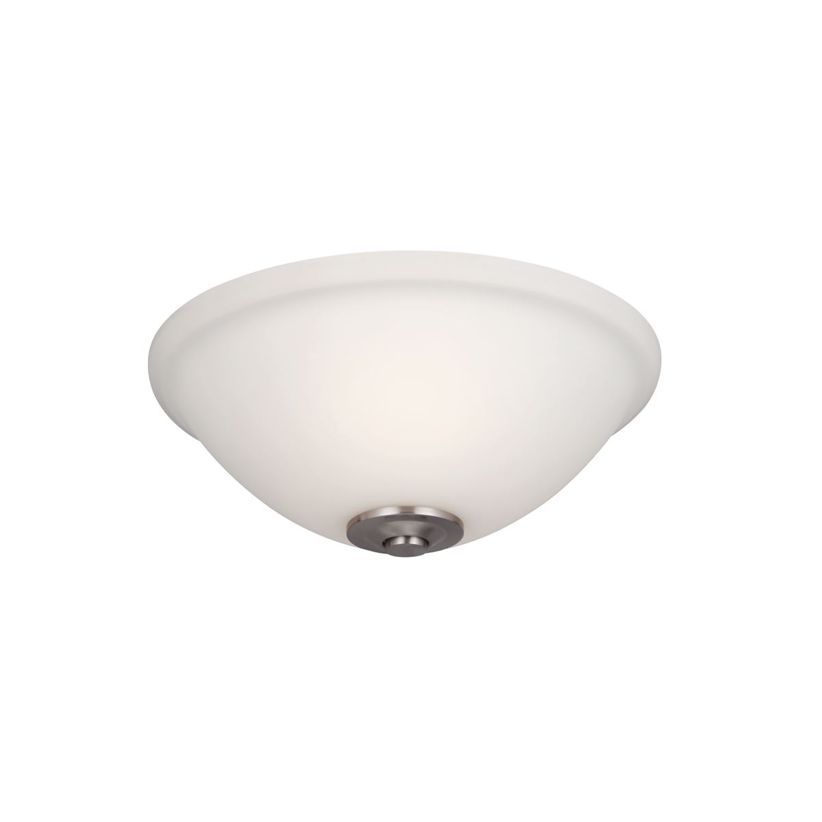 This 2LT Small Fluorescent Ceiling Fan Light Kit from Monte Carlo has a finish of Brushed Nickel and fits in well with any Transitional style decor.
