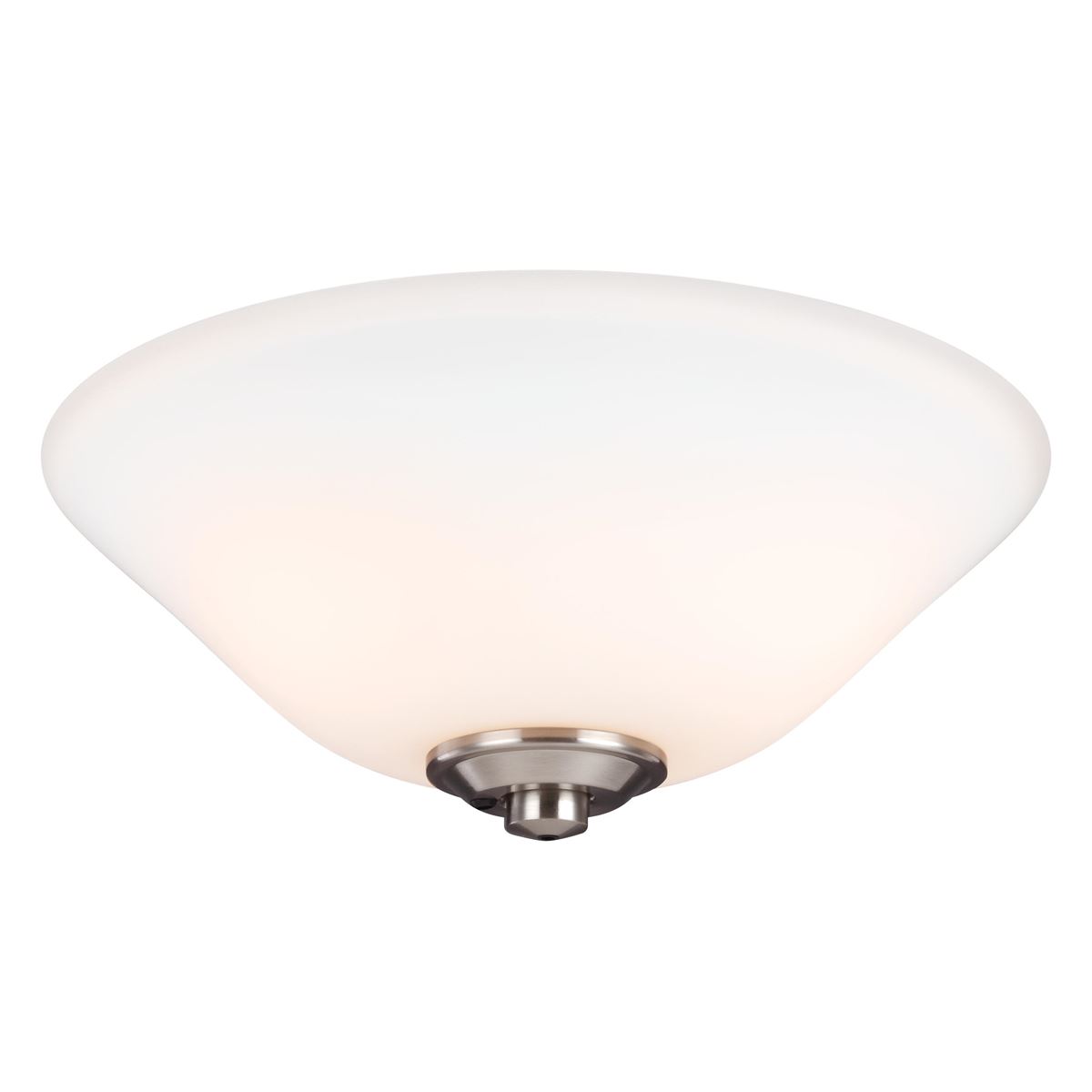 This 3-LT Candelabra Ceiling Fan Light Kit from Monte Carlo has a finish of Brushed Steel / Matte Opal and fits in well with any Transitional style decor.