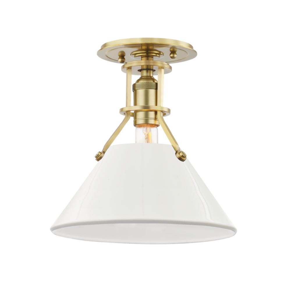 This 1-LT Semi Flush Mount from Hudson Valley has a finish of Aged Brass/Off White and fits in well with any Industrial style decor.