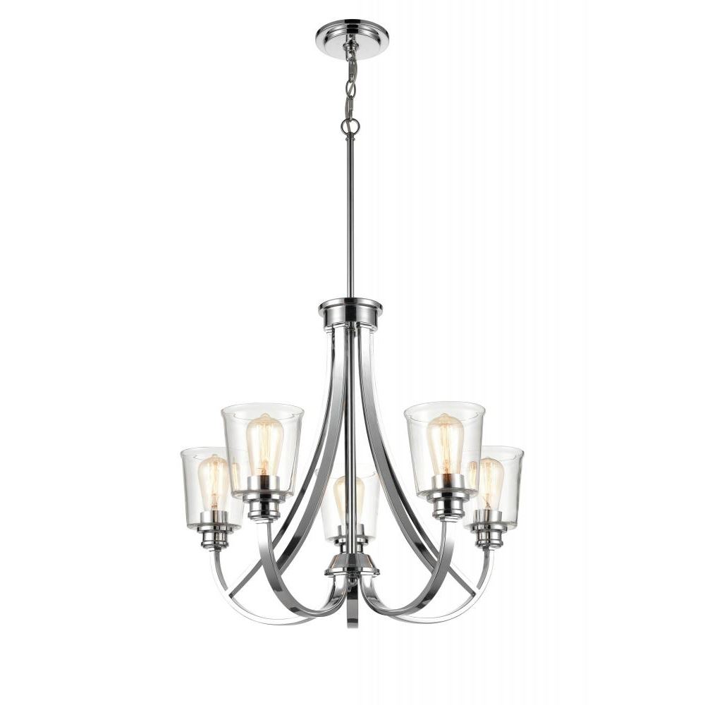 This 5-LT Chandelier Ceiling Light from Millennium has a finish of Chrome and fits in well with any Transitional style decor.