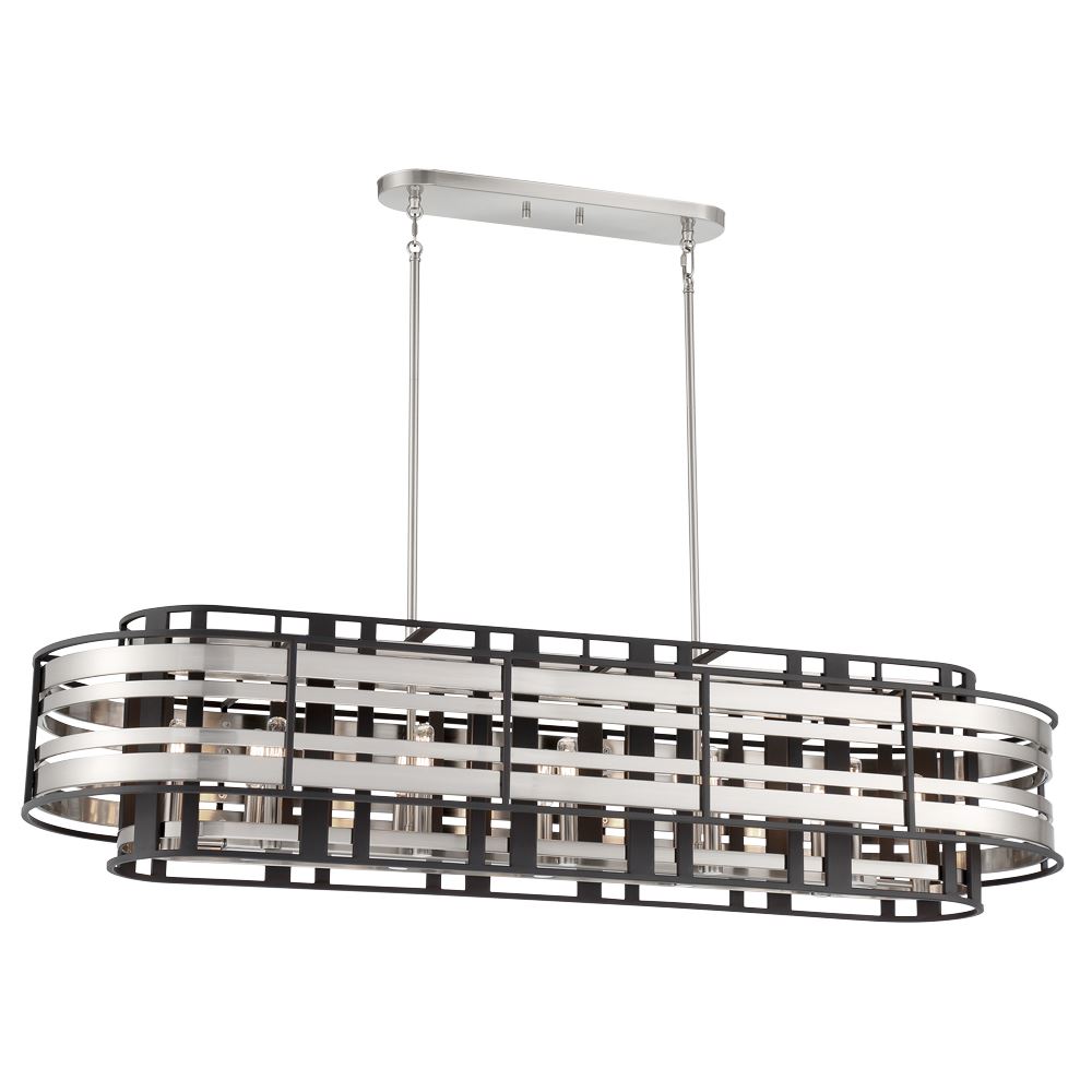 This 12LT Island Light from Metropolitan has a finish of Brushed Nickel W/ Sand Coal and fits in well with any Contemporary style decor.