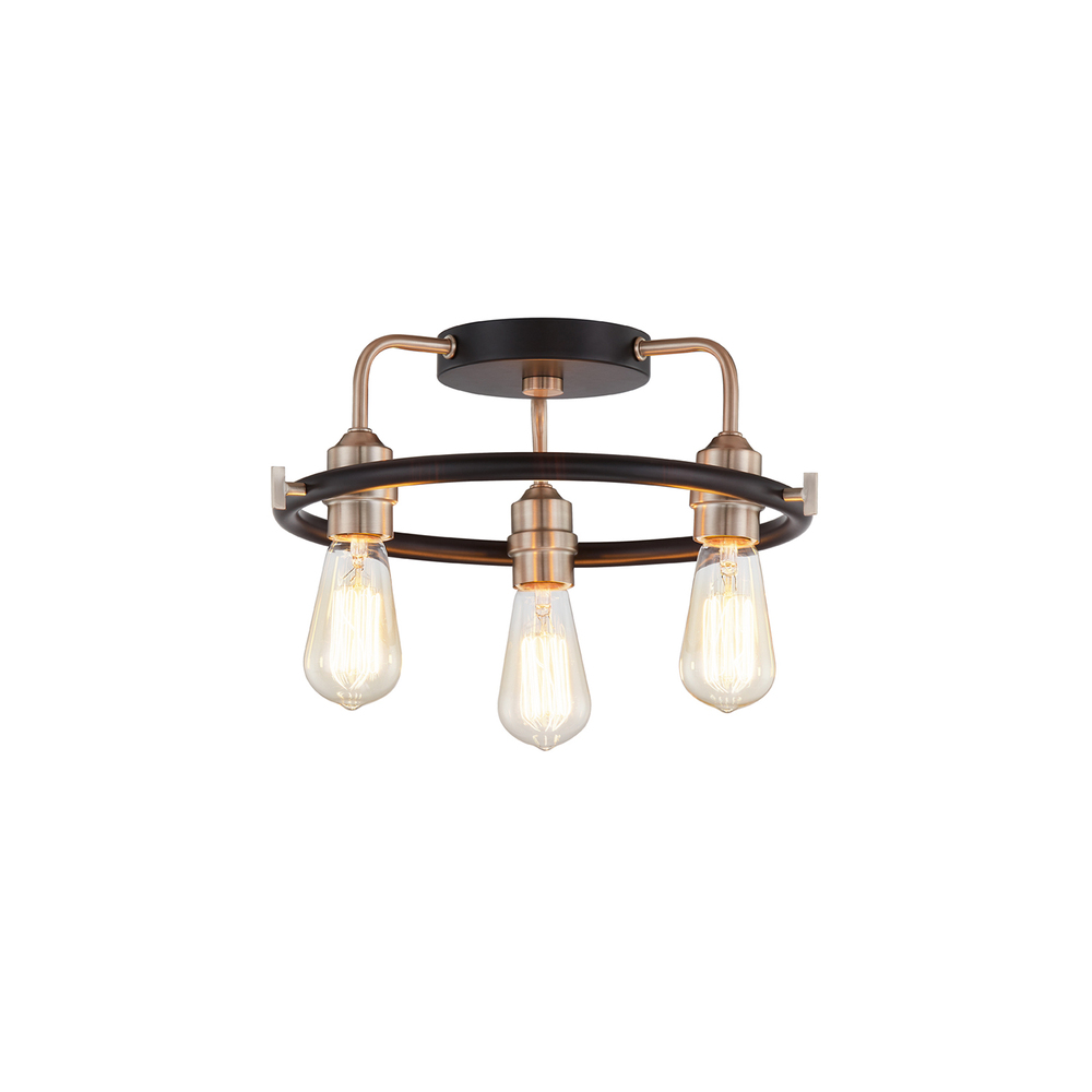 This 3-Light Flush-Mount from Justice Design has a finish of Matte Black w/ Brass Accents and fits in well with any Transitional style decor.