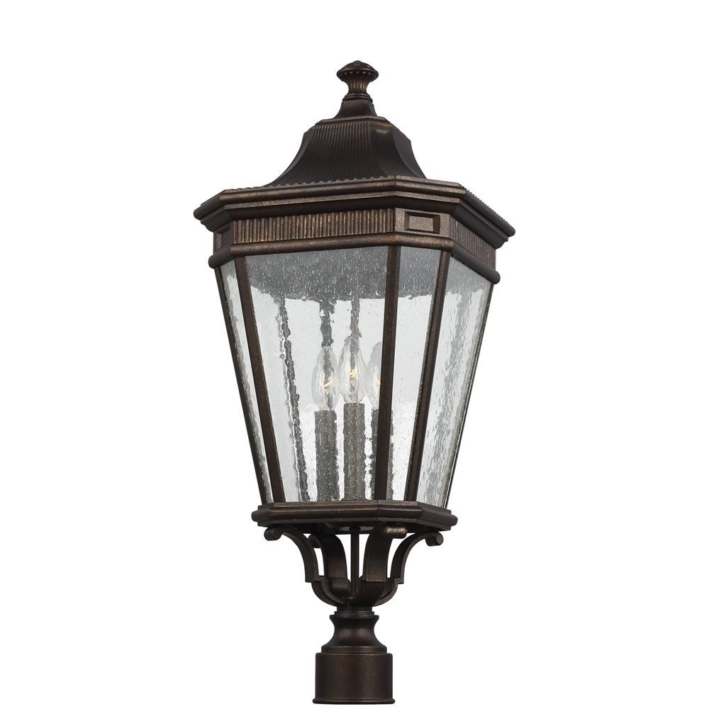 The traditional, antique gas lantern-inspired design of Cotswold Lane features dentil molding at the top of each pane of beveled glass. Cotswold Lane's profile is timeless and elegant. Available with two finish and glass options: a Black or Grecian Bronze frame with Clear Beveled glass or Clear Seeded glass panels.