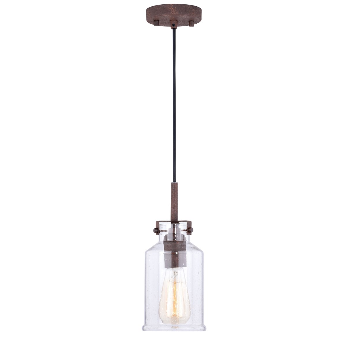 This charming rustic inspired collection called Milone produces a bold statement. The textured rust finish together with the clear seeded glass are artistically combined to create an ageless appeal with a modern twist. This complete collection includes a Chandelier, Medium Sized Pendant, Mini Chandelier, Mini Pendant, and Semi-Flush Mount to meet your lighting needs. Beautiful and bold this collection is the perfect addition to any interior space.