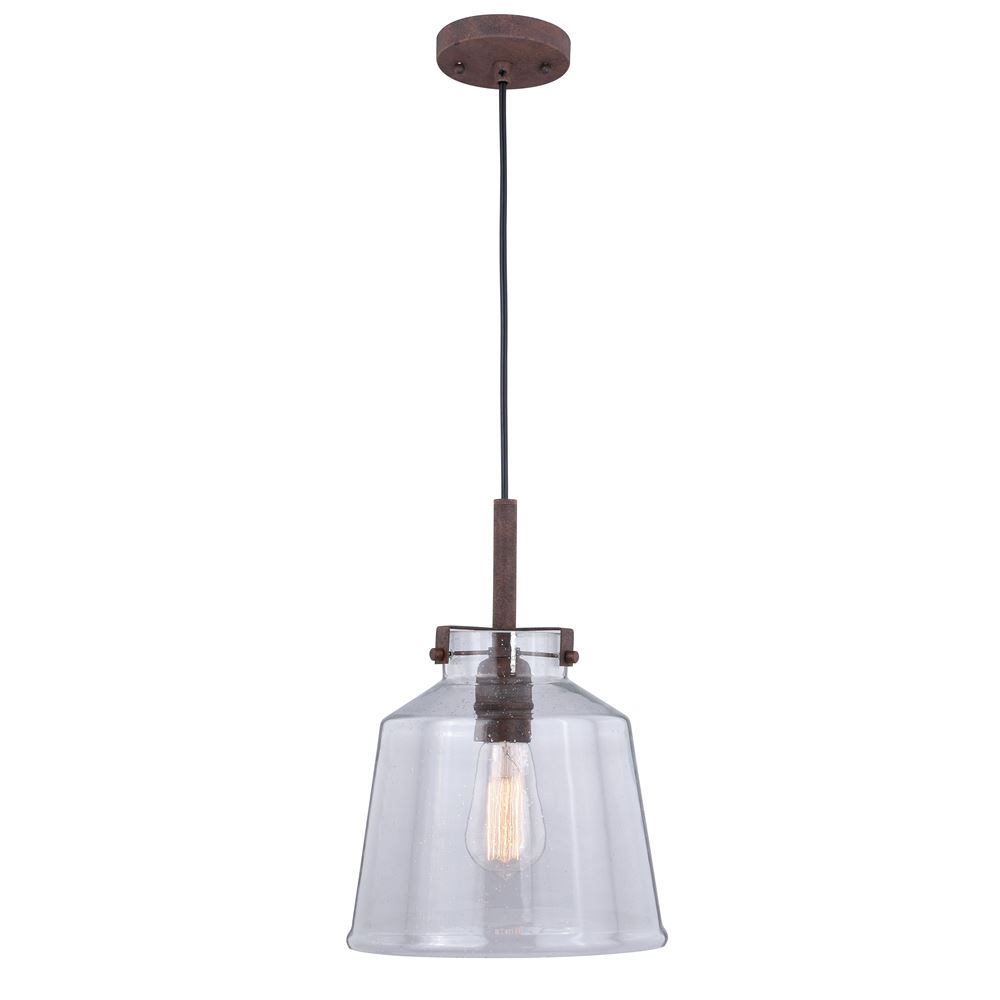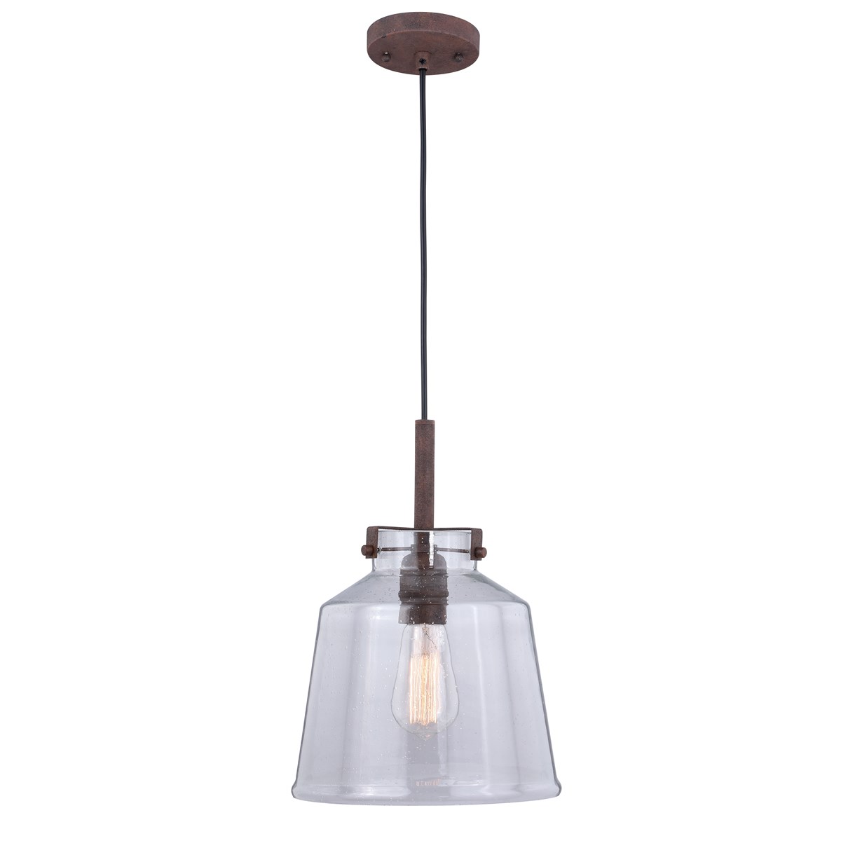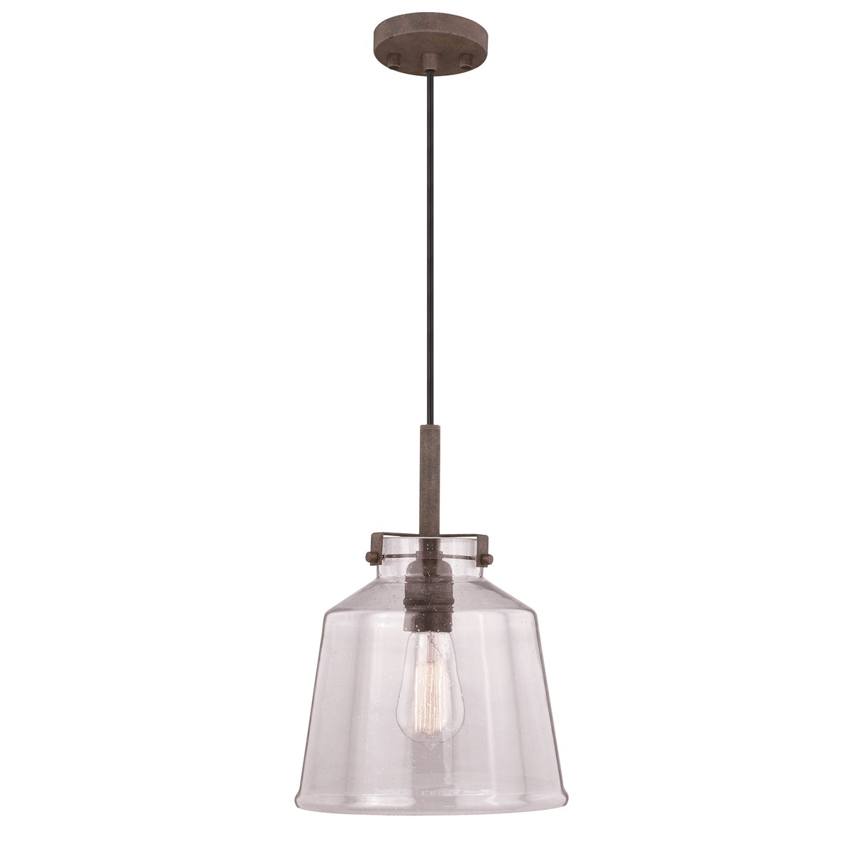 This rustic inspired soft industrial collection called Milone produces a bold statement. The textured rust finish together with the clear seeded glass are artistically combined to create an ageless appeal with a modern twist. This complete collection includes a Chandelier, Medium Sized Pendant, Mini Chandelier, Mini Pendant, and Semi-Flush Mount to meet your lighting needs. Beautiful and bold this collection is the perfect addition to any interior space from farmhouse to urban.