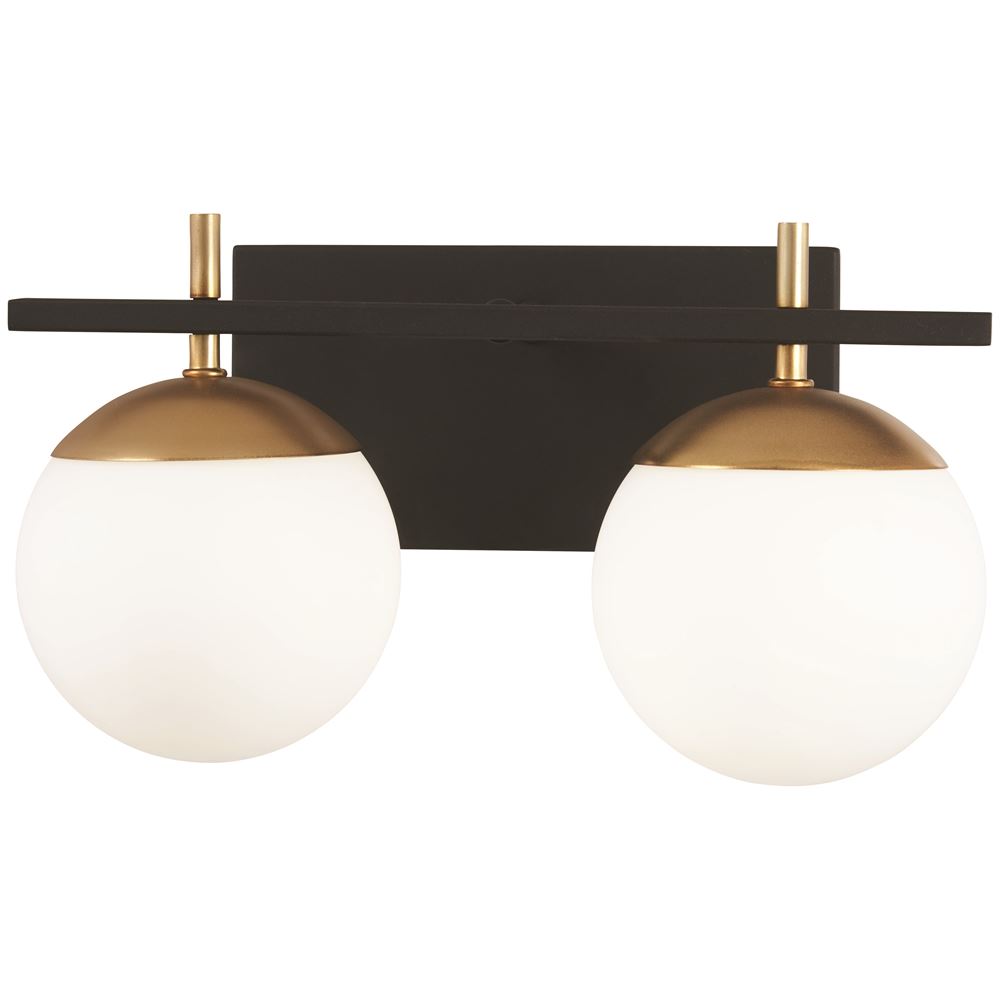 This 2-LT Bath Light from George Kovacs has a finish of Weathered Black W/Autumn Gold and fits in well with any Transitional style decor.