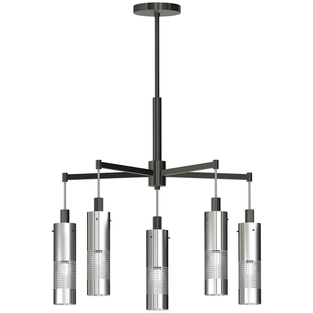 This 5-LT Chandelier from George Kovacs has a finish of Coal With Brushed Nickel and fits in well with any Transitional style decor.