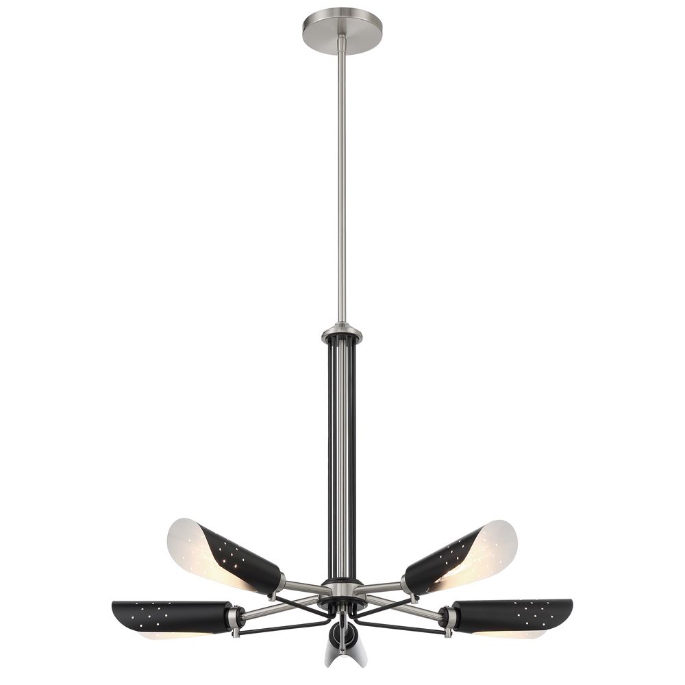 This 5-LT Chandelier from George Kovacs has a finish of Coal With Brushed Nickel and fits in well with any Transitional style decor.