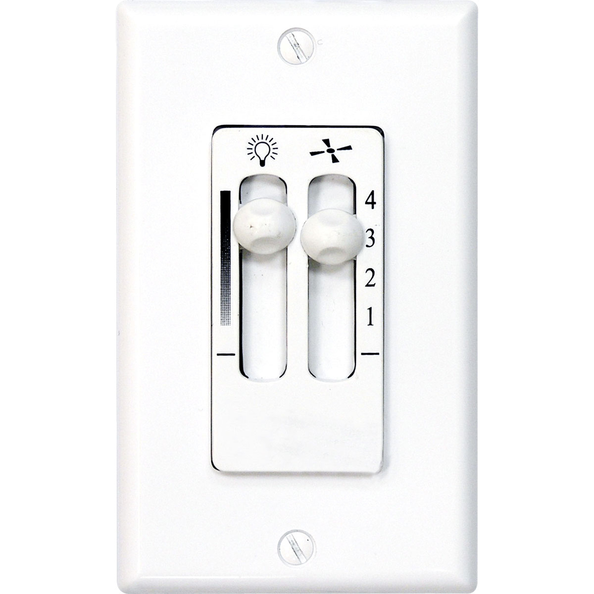 Four-speed, ceiling fan white wall control provides convenient operation for fans with pull-chain controls. Includes full-range lighting dimmer and switch plate cover. Requires two circuits - fits single gang wall box.