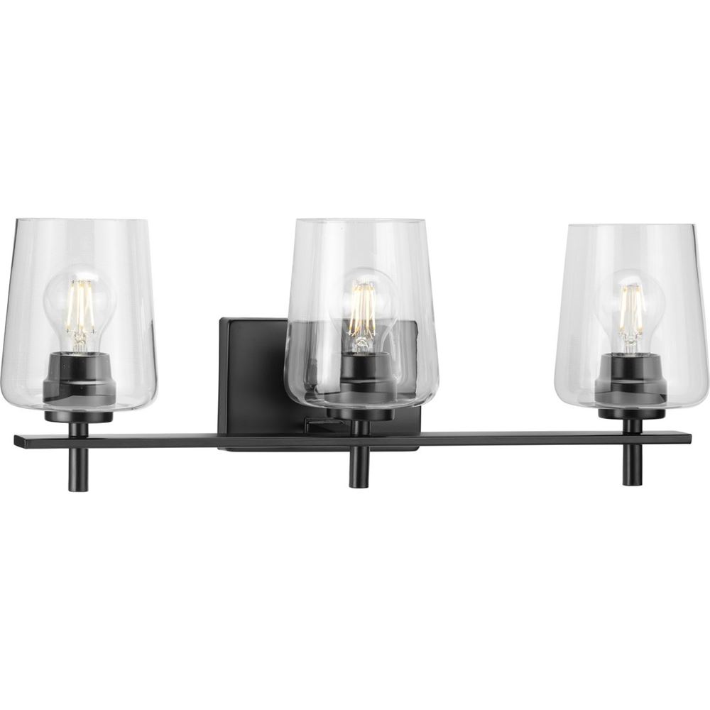 This 3-LT Bath Vanity Light from Progress Lighting has a finish of Matte Black and fits in well with any Transitional style decor.