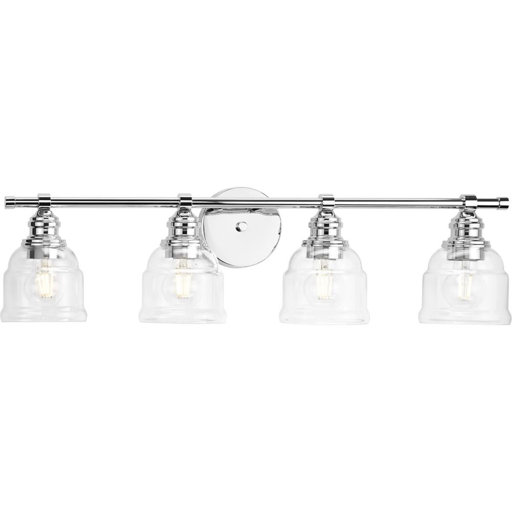 This 4-LT Bath Vanity Light from Progress Lighting has a finish of Polished Chrome and fits in well with any Transitional style decor.