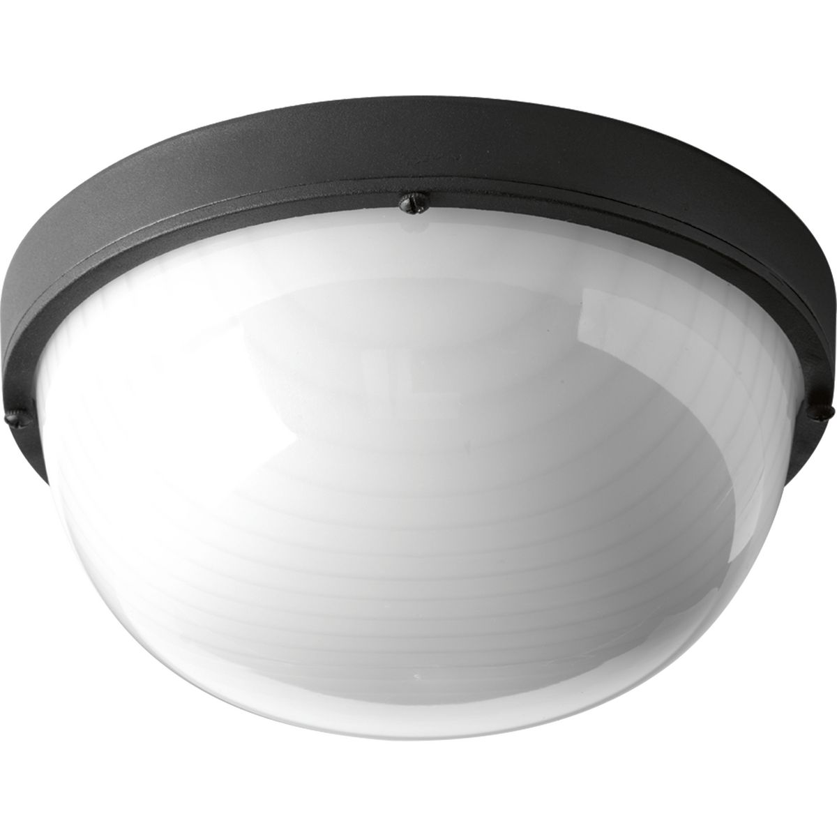 One-Light 9-1/2" LED Wall or Ceiling Bulkhead. General purpose LED luminaire comprised of a die-cast aluminum frame and polycarbonate diffuser. Fixtures are impact resistant and can be mounted on wall or ceiling. Replaceable LED module. Black finish.