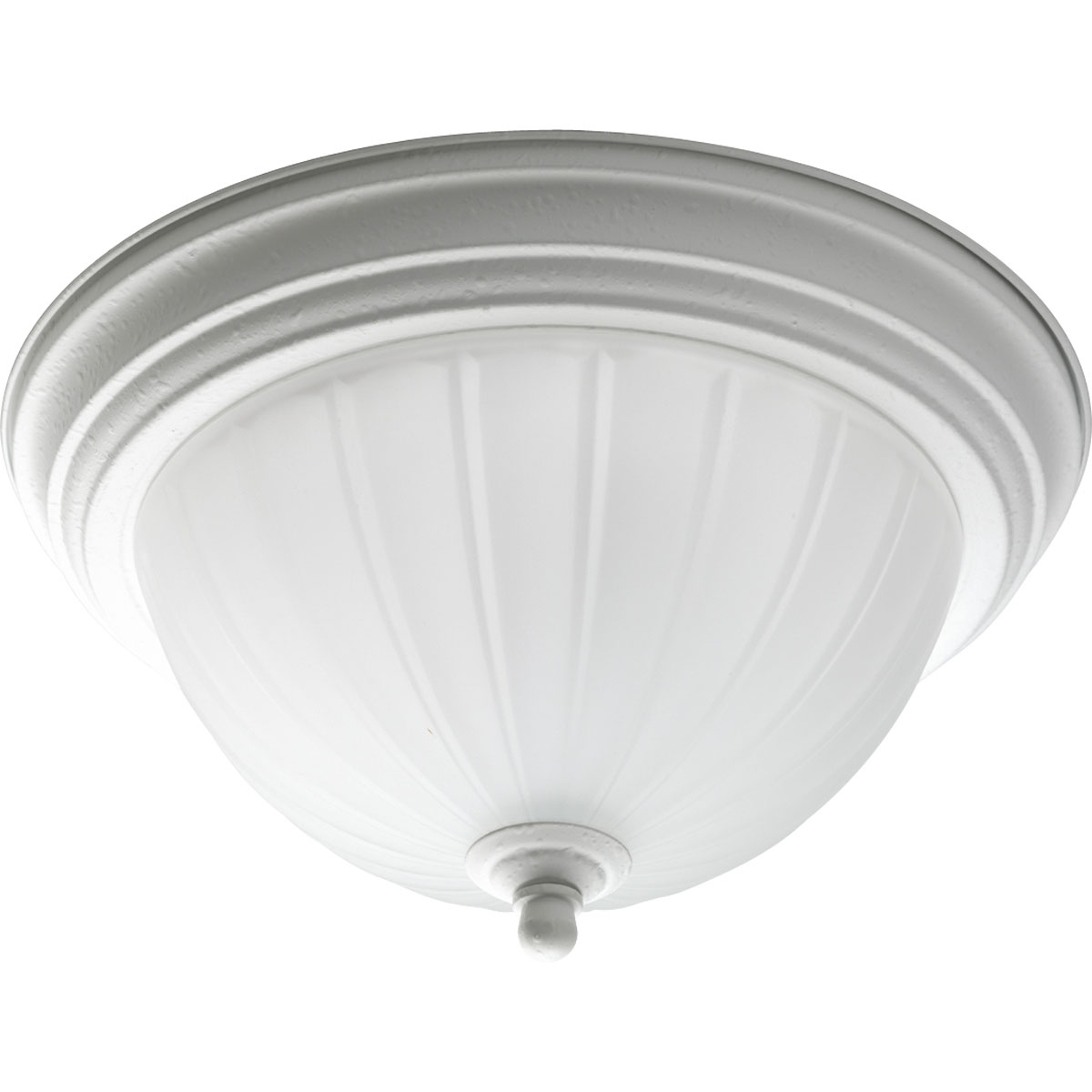 One-light close-to-ceiling with etched ribbed melon glass with center lock up in White finish.
