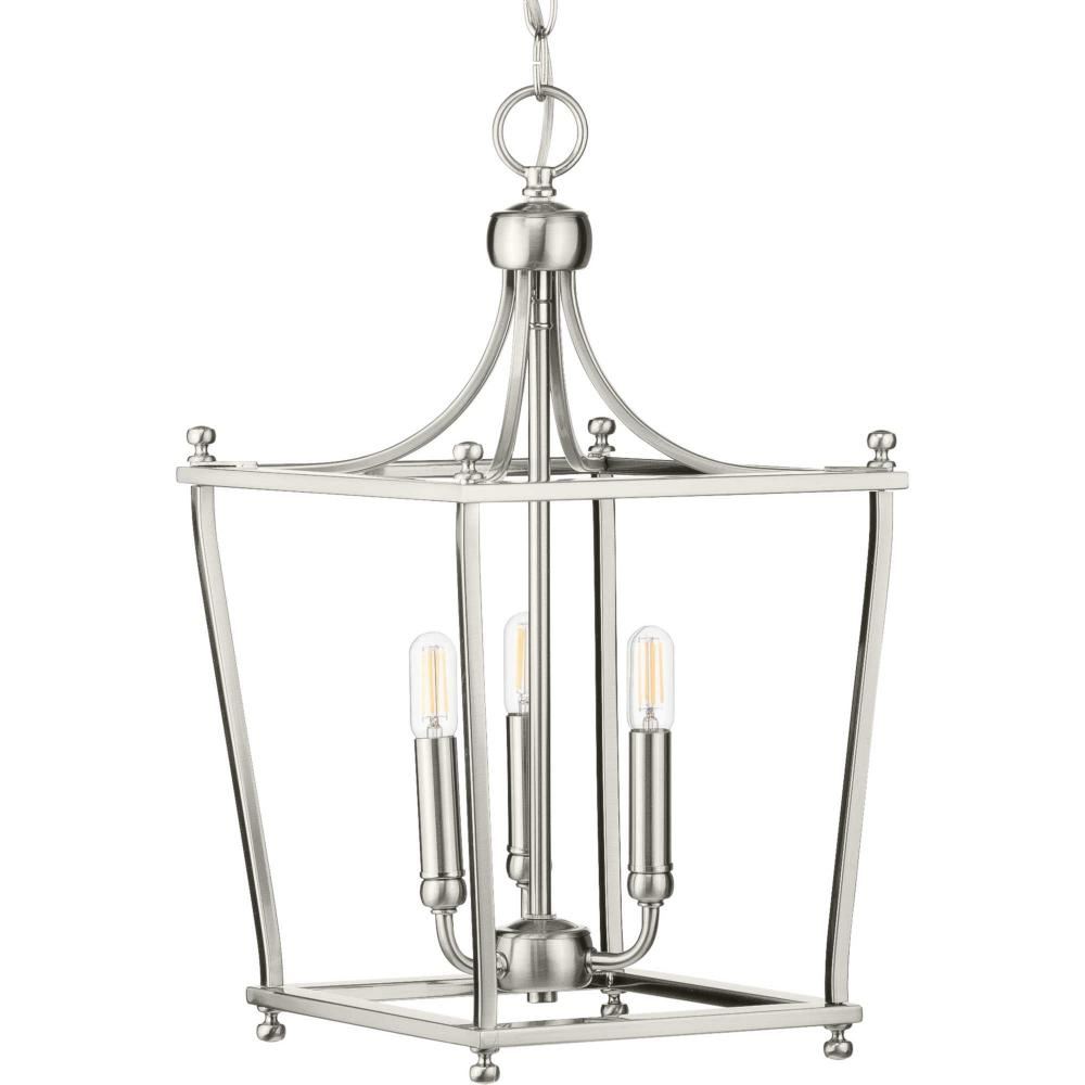 This 3-Light 60W Foyer Light from Progress has a finish of Brushed Nickel and fits in well with any Transitional style decor.