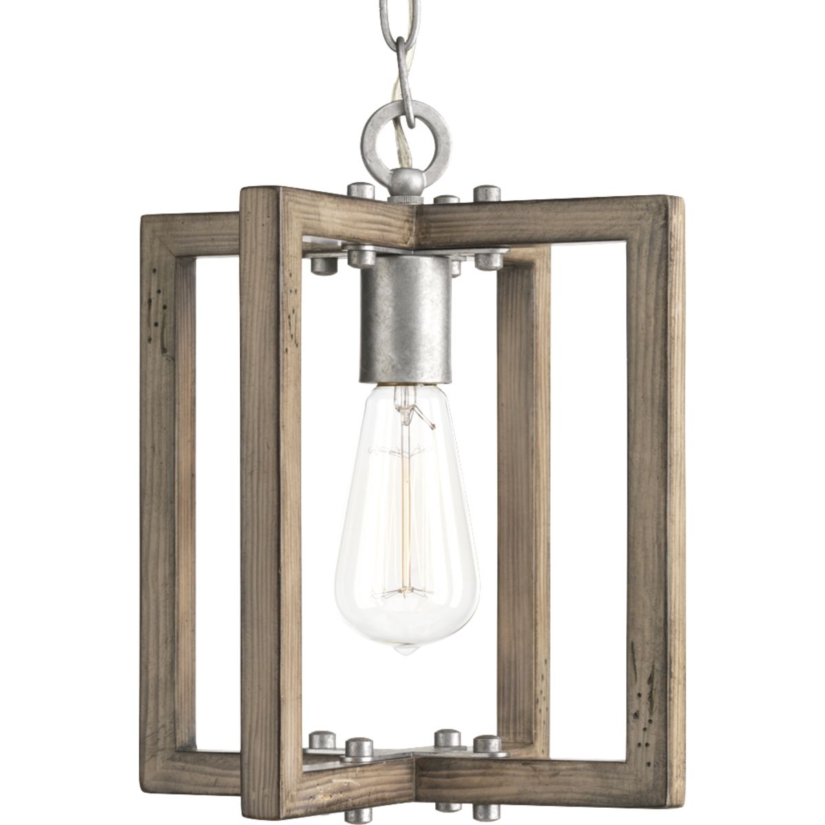 Nautical and coastal-inspired one-light mini-pendant is popular in a variety of today's home designs. Turnbury pendants feature a solid wood frame surrounded with hand-painted, galvanized metal fittings. The distressed frame finish is reminiscent of driftwood that has been weathered in the sun.