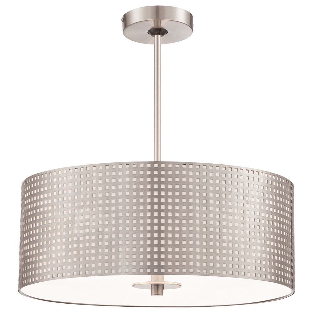 This 3-LT Drum Pendant from George Kovacs has a finish of Brushed Nickel and fits in well with any CONTEMPORARY style decor.