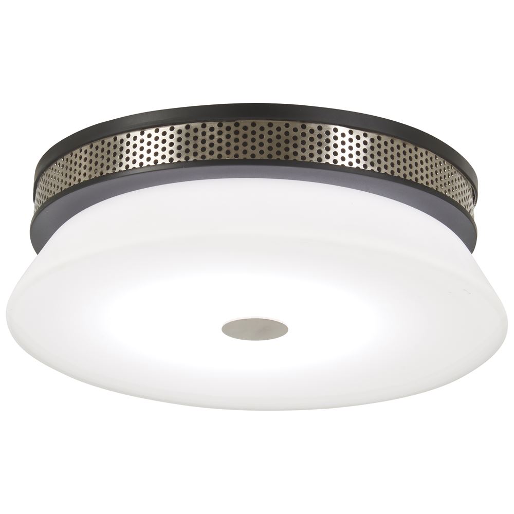 This LED Flushmount from George Kovacs has a finish of Coal With Brushed Nickel and fits in well with any Contemporary style decor.