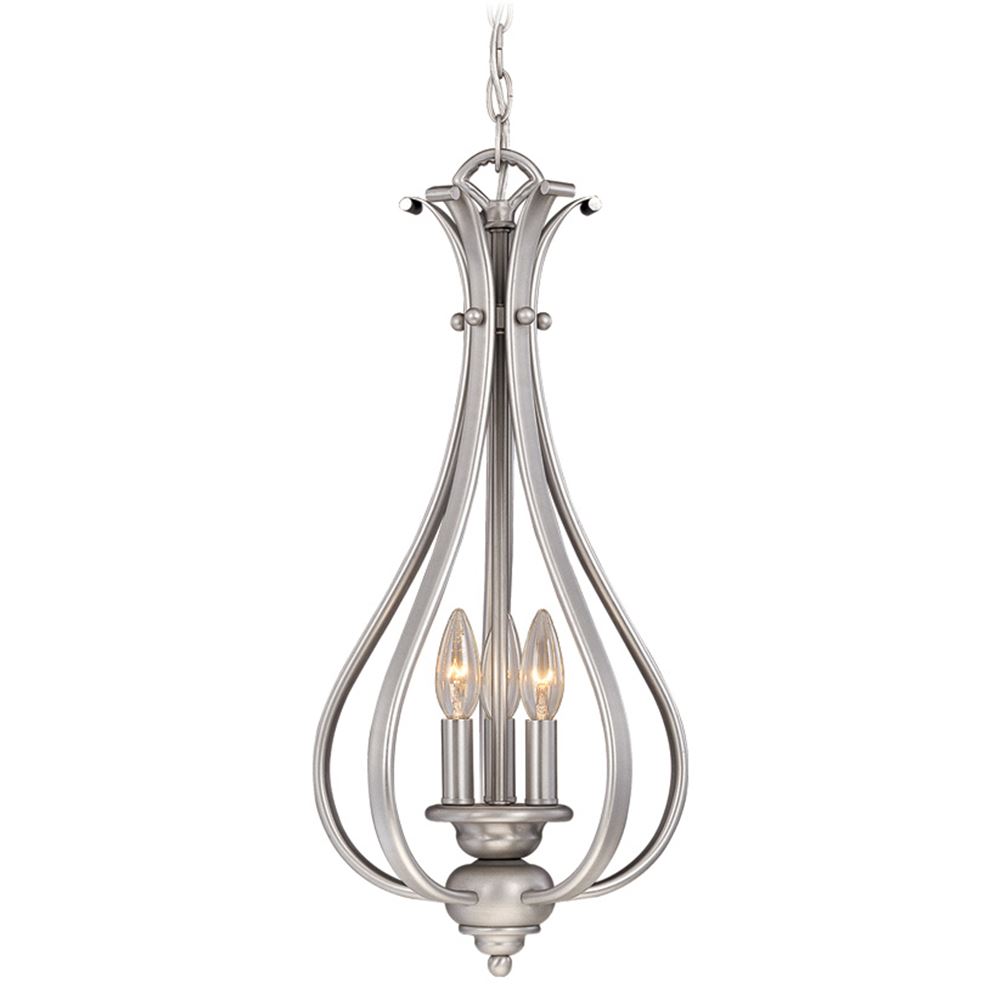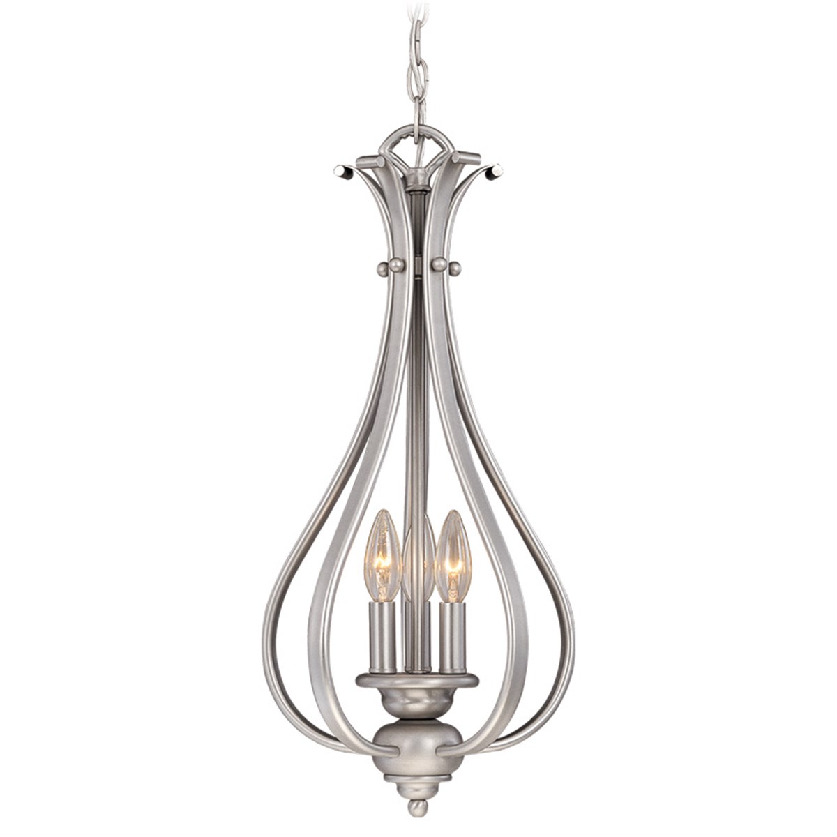 The soft traditional lines of the Monrovia Collection allow you to combine styles within your home without compromising on design. The Brushed Nickel Finish adds a certain level of sophistication and elegance that is rare to achieve. This 3 Light Pendant is perfect in Living Areas, Foyers or Dining Areas where you would like to update your look with a hint of class.