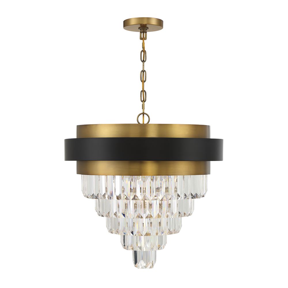 Tiers of shimmering faceted acrylic gems cascade down to create a gorgeous look in the Savoy House Marquise 4-light chandelier. At the top, its band of matte black and warm brass adds a dose of classic, timeless glamour. Marquise truly is fine jewelry for the home. This chandelier is 23" in height and 24" in width. Uses four standard size bulbs of up to 60 watts per bulb. Comes with 120" of chain and 144" of cord.