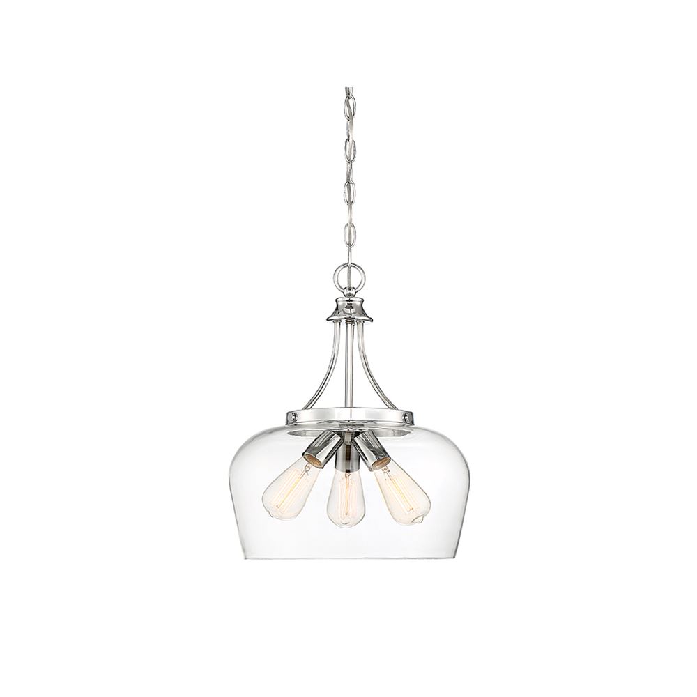 Get a pendant look with understated elegance when you get the new Savoy House Octave 3-light pendant. It features a single large shade of curved clear glass, minimal detailing and a sleek polished chrome finish. Pendants are extremely versatile and can fit in many different spaces, such as kitchens, family rooms, great rooms, foyers, entryways, offices, bedrooms and bathrooms.
