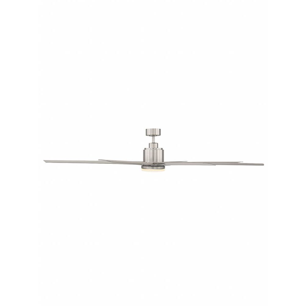 The Savoy House Bluffton ceiling fan is a smart idea for use in a larger room. It has a streamlined contemporary look, eight slim blades finished in silver, an integrated light kit and a sleek satin nickel finish.