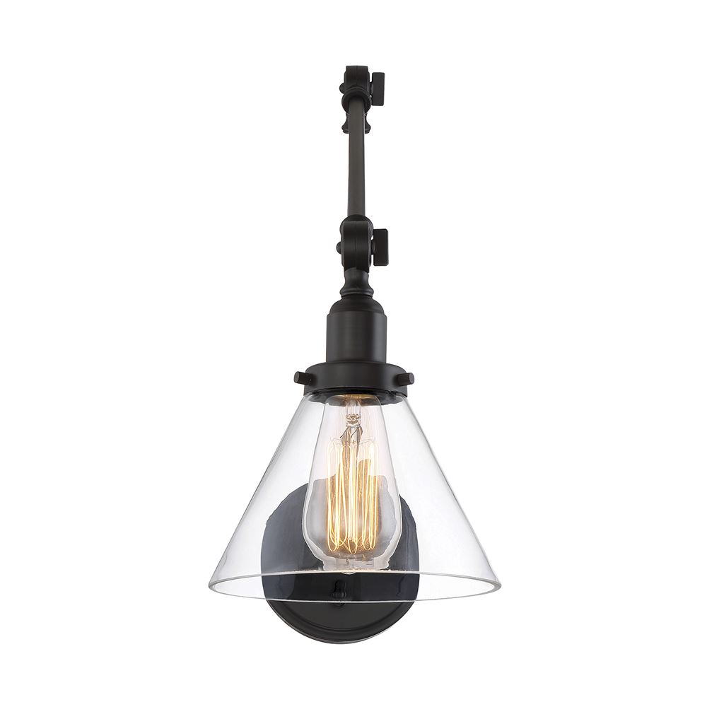 This Savoy House Drake 1-light sconce has an alluringly simple style with a few choice hardware details and a shade of clear glass. The adjustable sconce can be hard-wired or used with the included cord and plug. There is an on-off switch on the backplate. Bulb not included. Finished in English bronze.