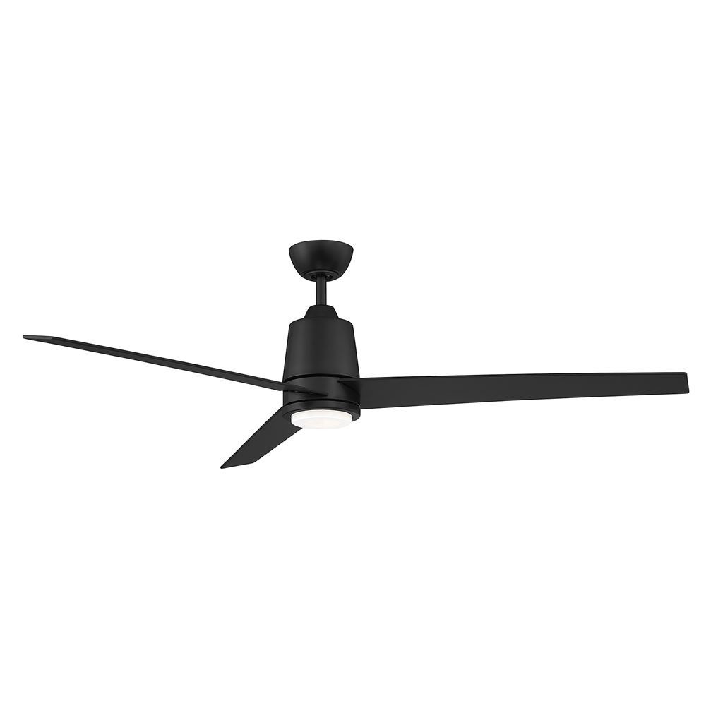 This Meridian 56" ceiling fan is on the cutting edge of style! Showcasing a trio of blades and a simply chic look with a matte black finish, this fan is an excellent choice for adding comfort and light to rooms with modern, contemporary and transitional style. An integrated dimmable 17-watt LED light that gives off 530.8 lumens with a color temperature of 3000K is included. This fan is also very efficient thanks to its 6-speed, reversible DC motor.