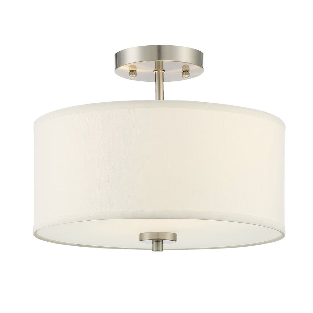 This versatile 2-light ceiling semi-flush mount has a crisp white fabric shade and Brushed Nickel finish.