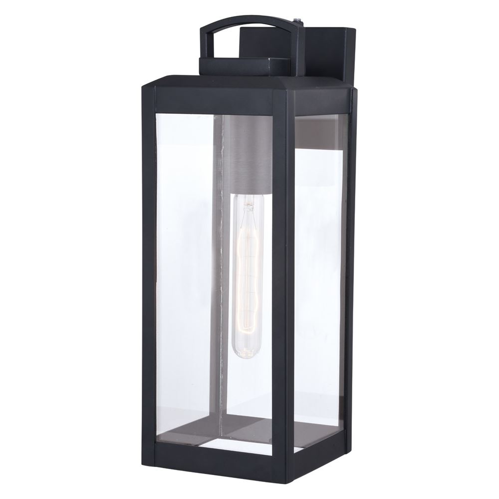 Elongated, slim, clear glass panels frame the Kinzie for a clean, contemporary feel. The oblong lantern handle adds an additional design element to this outdoor wall light collection. Finished in textured black, the Kinzie creates a bold but understated look perfect for highlighting your space. Combine that with vintage Edison style filament bulbs to complete the look. This outdoor wall light is ideal for your porch, entryway, garage, or any other area of your home.