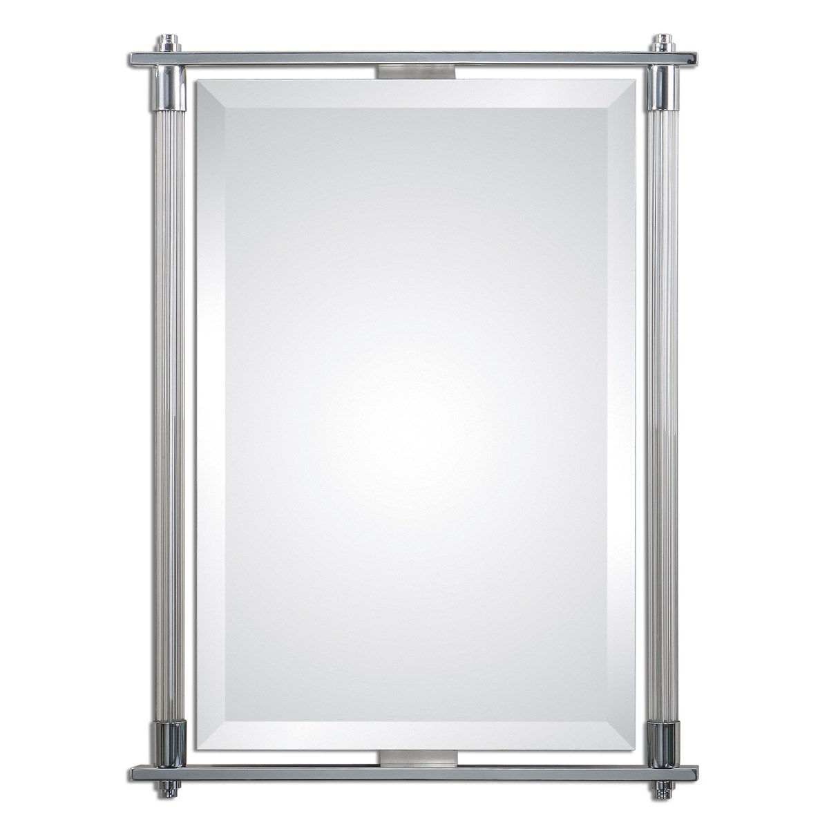 Ribbed Glass Columns Accented With Polished Chrome Plated Details. Mirror Features A Generous 1 1/4" Bevel. May Be Hung Either Horizontal Or Vertical.