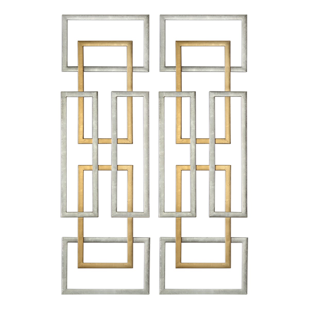 Overlapping, Geometric Rectangles Creating A Contemporary Look In A Two Toned Finish Combination Of Lightly Antiqued Gold And Silver Leaf. May Be Hung Horizontal Or Vertical.