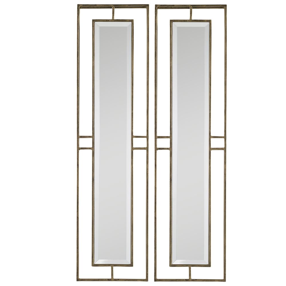 Clean And Contemporary, Each Mirror Exhibit Linear Metal Frames With A Nearly Two Inch Open Depth. Each Frame Is Finished In A Heavily Antiqued Gold, Accented By Slim Beveled Mirrors. May Be Hung Horizontal Or Vertical.