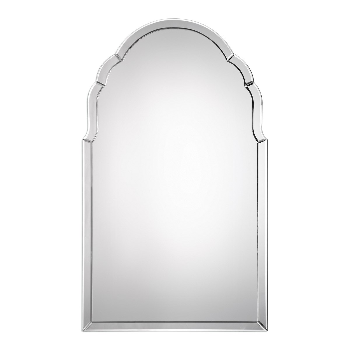 A Timeless Classic Featuring An Elegantly Shaped Arch. This Frameless Mirror Is Constructed Of Curved, Hand Beveled Mirrors With A Solid Wood Backing Painted Black. Perfect For Any Setting And Will Never Go Out Of Style.