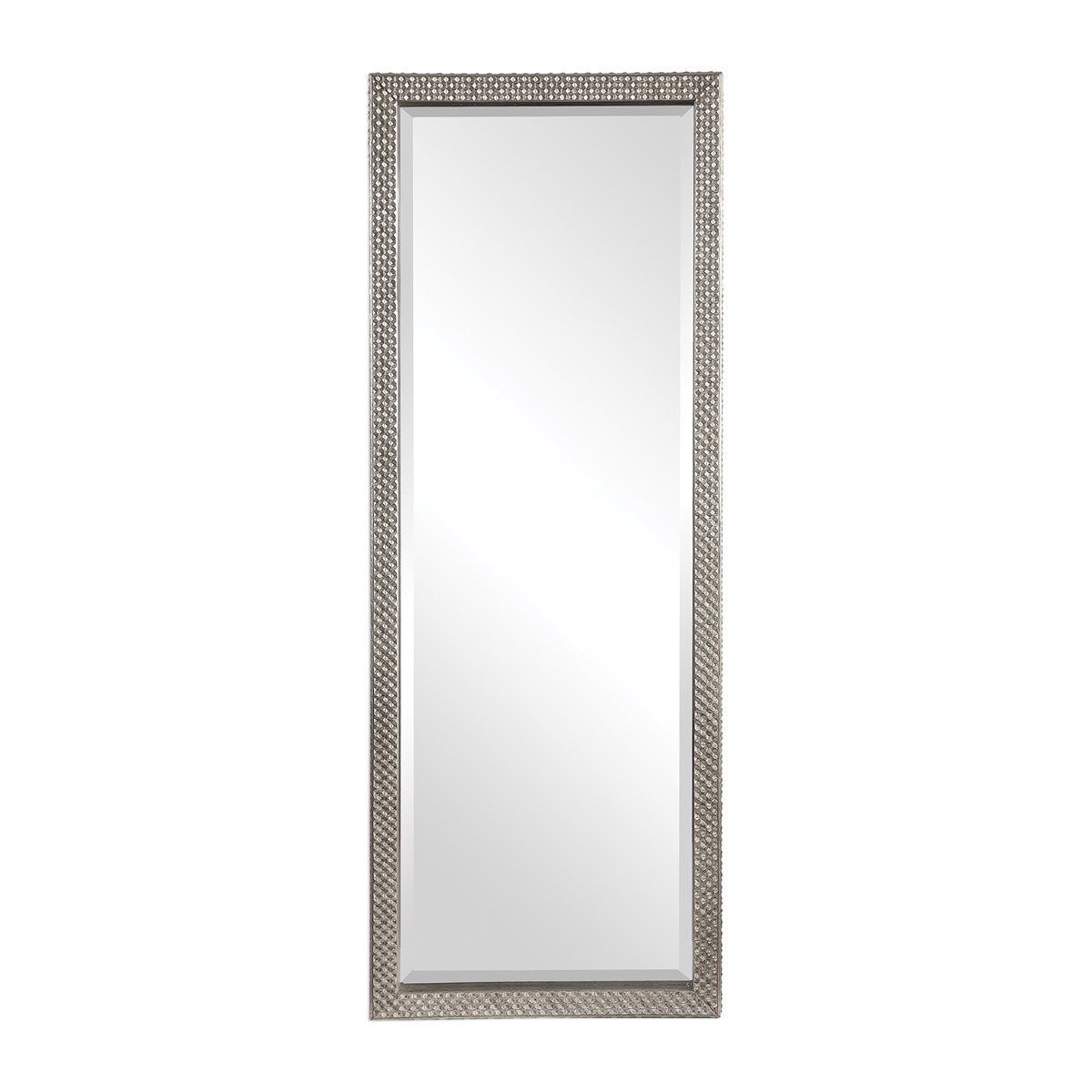This Leaner Style Mirror Features A Solid Wood Frame Showcasing A Diamond Studded Texture On Face And Outside, Finished In A Lightly Antiqued Metallic Silver. Mirror Features A Generous 1 1/4" Bevel. May Be Hung Horizontal Or Vertical.