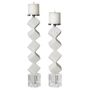 Set Of Two Candleholders Feature Stacked Cubes Made Of Granulated Marble That Accurately Replicates The Look Of Thassos Marble Set Atop Crystal Bases With Polished Nickel Candle Cups. Two, 3x3 Distressed White Candles Included. Sizes: S- 3x16x3, L-3x19x3.