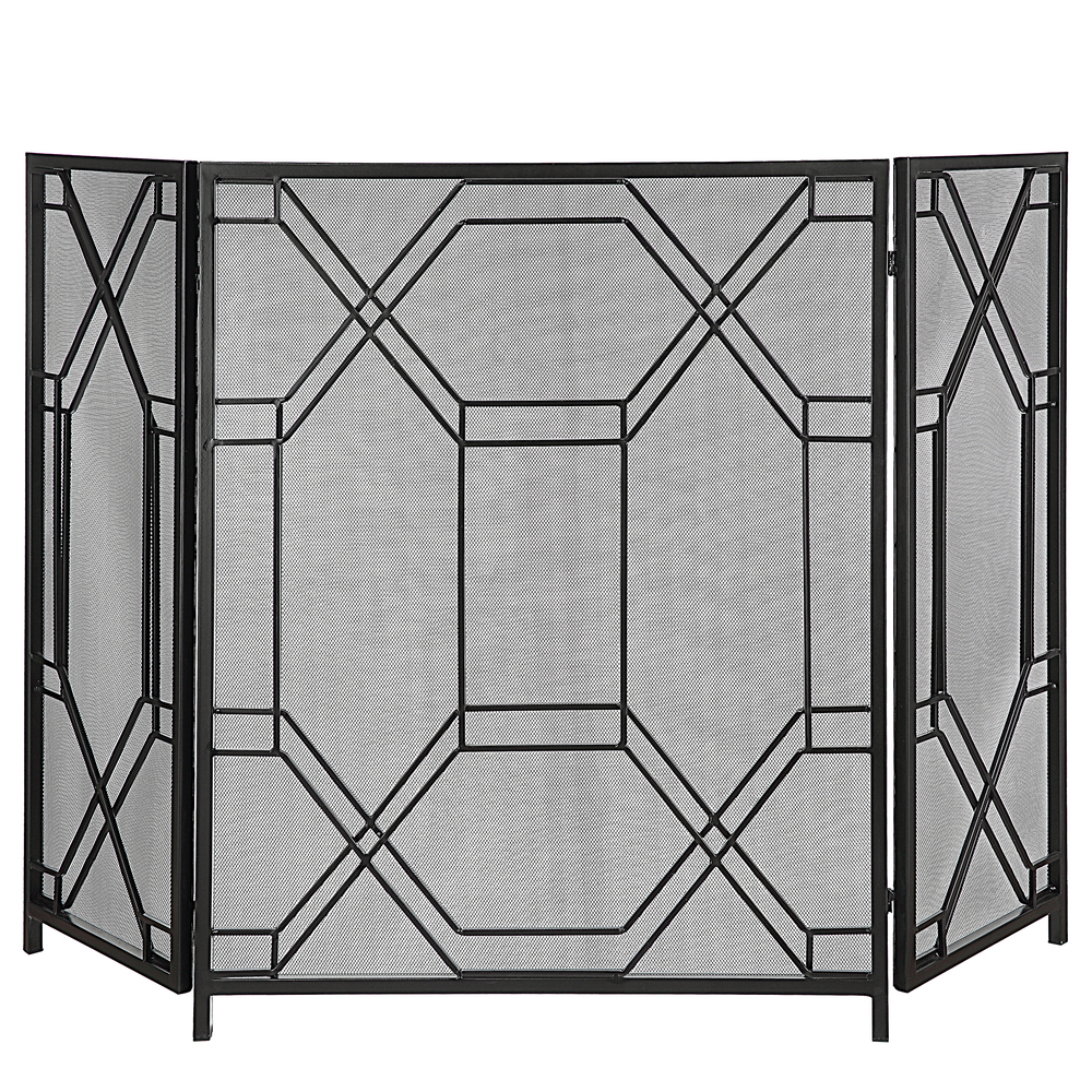 Forged Iron Fireplace Screen Features A Geometric Design In A Satin Black Finish. The Center Panel Is 26" Wide And The Side Panels Are Each 13" Wide.