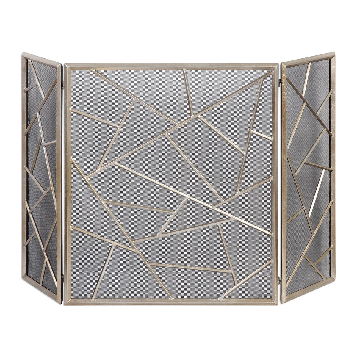 Decorative, Iron Fireplace Screen Features A Lightly Antiqued Silver Leaf Finish. Center Panel Is 26" Wide And Each Side Panel Is 13" Wide.