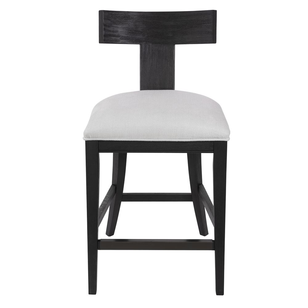 This Modern Take On A Klismos Design Features A Curved Rubber Wood Frame That Has Been Wire Brushed And Rubbed In A Charcoal Black Stain, Paired With A White Slubbed Performance Fabric Cushion. Seat Height Is 26".