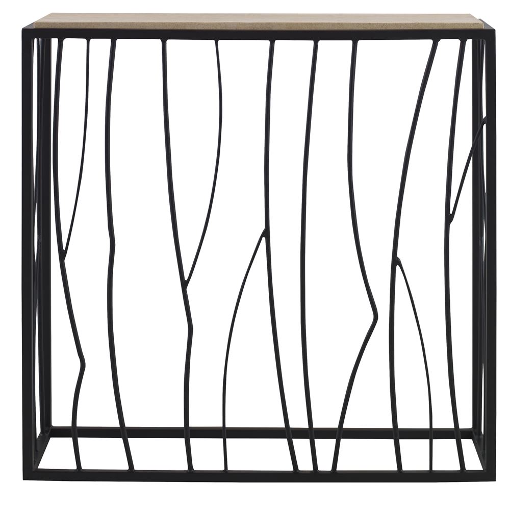 Inspired By Natural Landscapes, This Console Table Features An Asymmetrically Designed Metal Base Finished In Dark Iron Paired With A Natural Ivory Travertine Top. True To The Nature Of Natural Materials, Each Piece Will Have Unique Marbling And Veining Throughout.