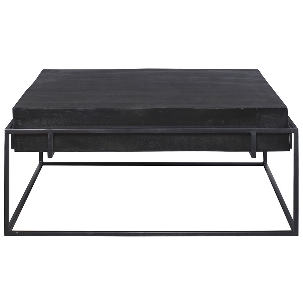 With Modern Minimalist Styling, This Coffee Table Features A Thick Cast Aluminum Top With Natural Texturing Finished In A Dark Oxidized Black, Resting In A Coordinating Aged Black Iron Base.