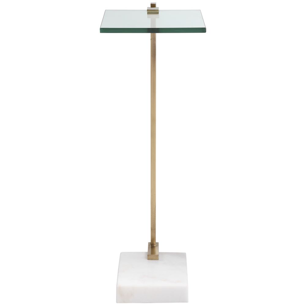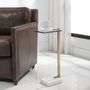 This Perfect Pull-up Table Pairs An Updated Design With Timeless Finishes. The Tempered Glass Top Is Supported By A Brushed Brass Plated Stainless Steel Base Accented By An Elegant White Marble Foot With Natural Veining.