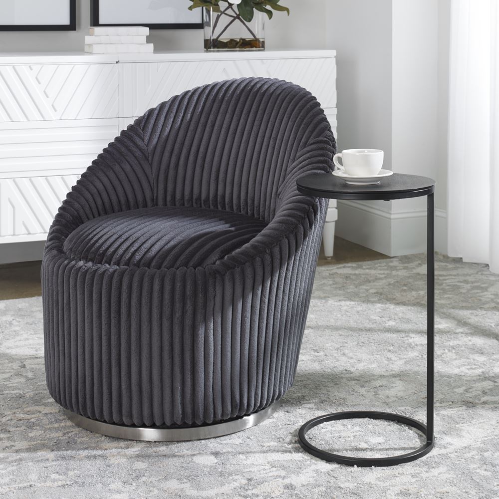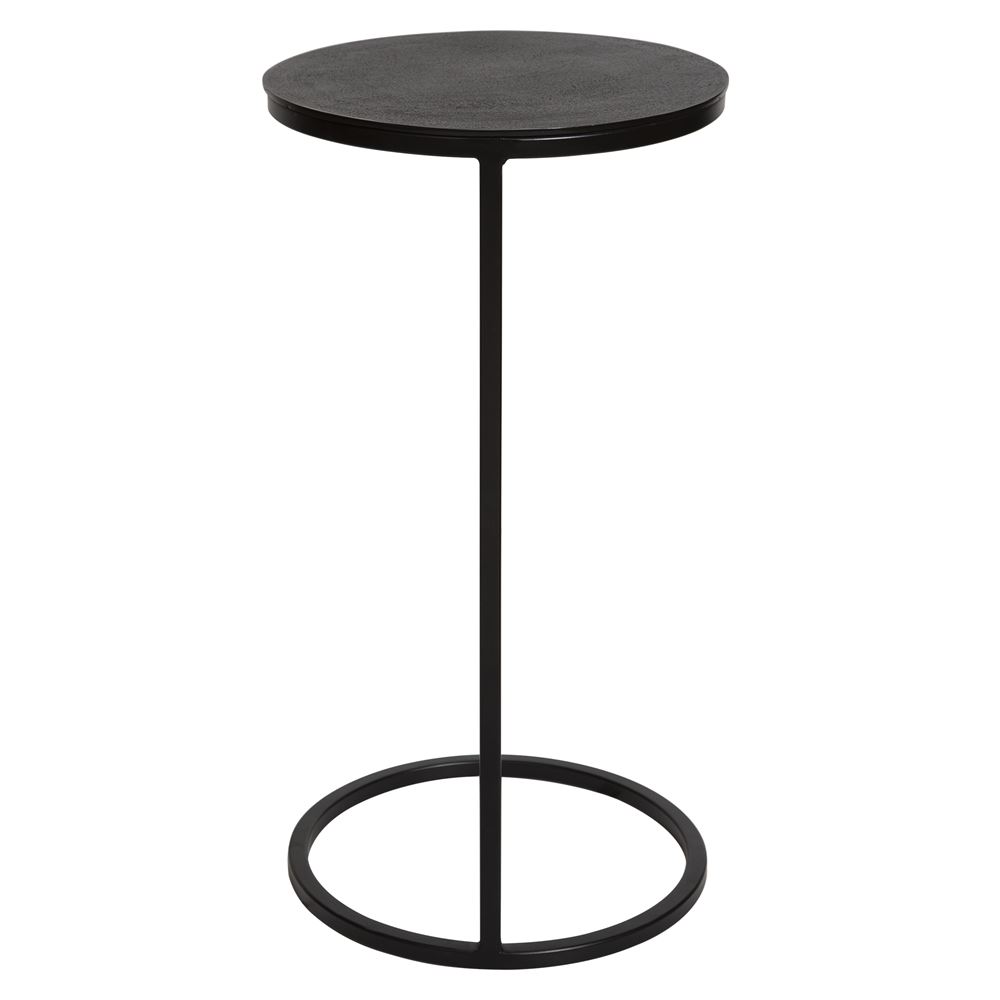Modern And Streamlined, This Round Accent Table Is Constructed In An Aged Black Iron Featuring A Cast Textured Aluminum Slab Top Finished In A Plated Antique Bronze.