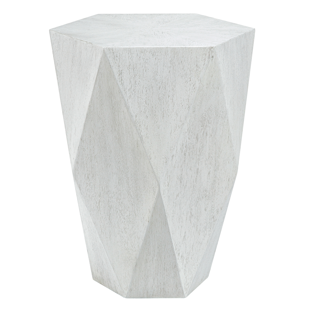 This Unique Geometric Side Table Features A Sunburst Top In Mango Veneer In A Fresh White Ceruse Finish.