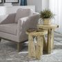 Made From Solid Tamarind Wood, This Set Of Two Nesting Tables Features Strong Angular Lines With Beautiful Spalting In A Natural Finish. Sizes: Sm-16x19x16, Lg-18x22x18