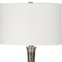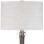 Showcasing A Masculine Look, This Buffet Lamp Features An Ebony And Charcoal Bubble Glass Base Accented By Contemporary Brushed Nickel Plated Iron Details. The Lamp Is Paired With A Hardback Drum Shade That Is Covered In A White Linen Fabric.
