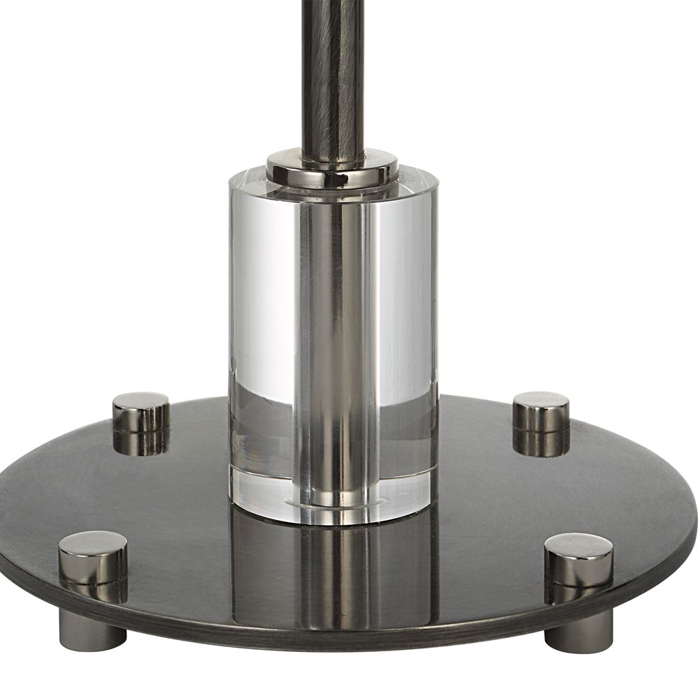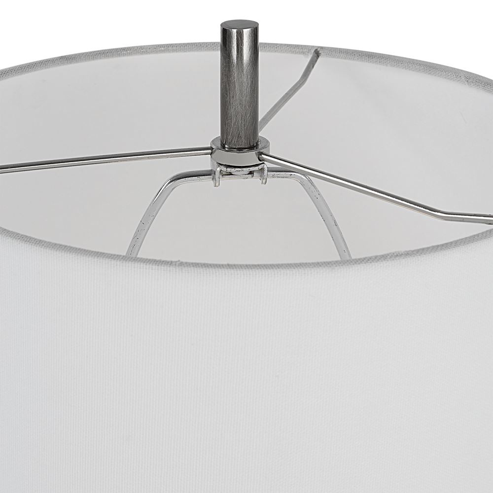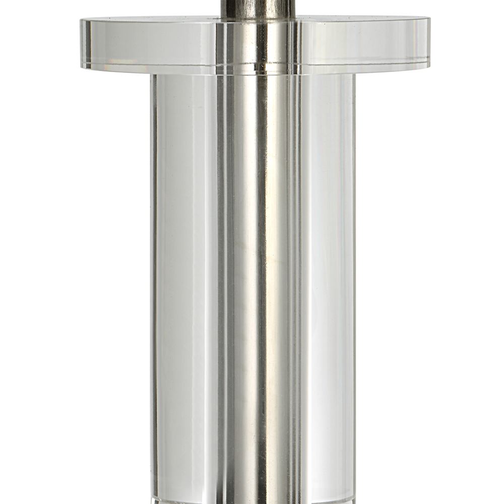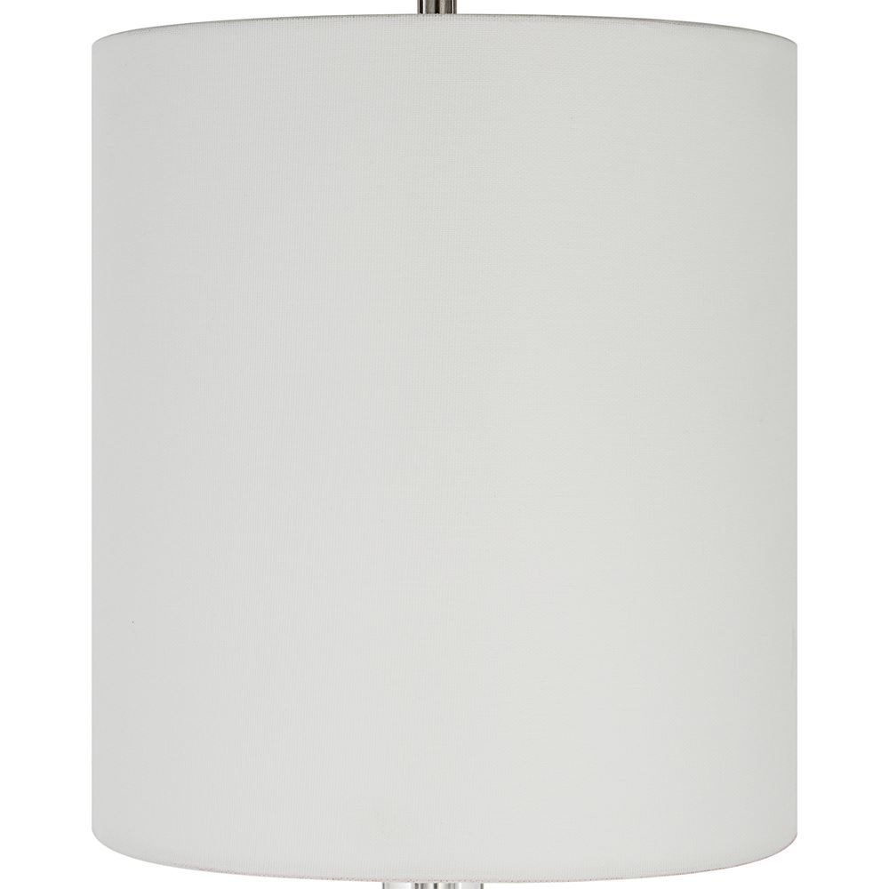 This Steel Buffet Lamp Features Clean, Simple Detailing With A Polished Nickel Base And Unique Foot, Adorned With Thick Crystal Accents. The Round Hardback Shade Is Wrapped In White Linen Fabric.
