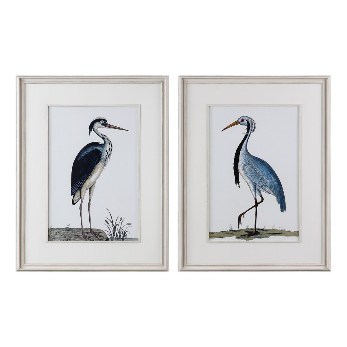 Add A Dash Of Wayfaring Style To A Design With This Coastal Artwork. Adding A Light And Airy Feel To A Space, Each Bird Print Is Accented By A Clean, White Mat And Is Surrounded By Distressed, Whitewashed Wooden Frames And Matching Fillets. Each Print Is Placed Under Protective Glass.
