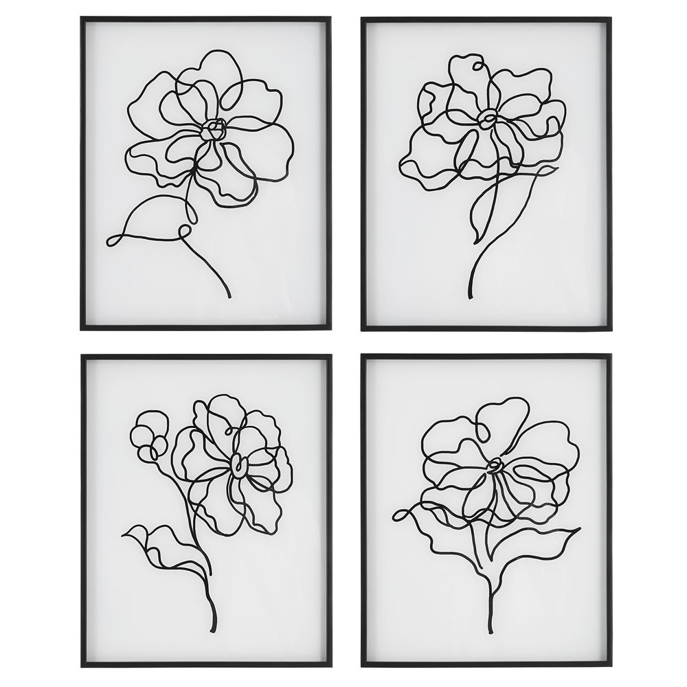 Simple Yet Elegant, This Artwork Makes A Beautiful Statement With A Classic Black And White Palette. Each Modern Floral Sketch Is Executed On Back Painted White Glass With A Slim Black Frame.